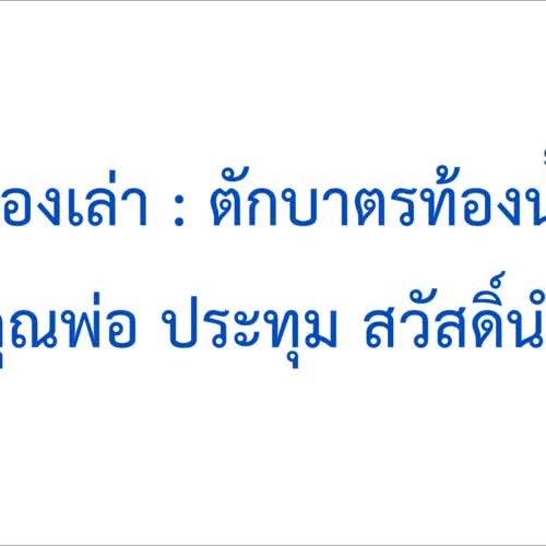 | คำอธิบาย : เรื่องเล่า ตักบาตรท้องน้ำโดย คุณพ่อ ประทุม สวัสดิ์นำบันทึกเมื่อ 22/9/59 |