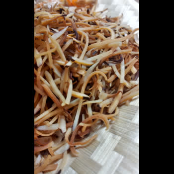 | คำอธิบาย : มะพร้าวคั่ว คือ การนำมะพร้าวมาคั่วโดยใช้ไฟอ่อนจนมีสีเหลืองออกสีน้ำตาล จากนั้นตักออกผึ่งไว้พอเย็น มะพร้าวที่คั่วจะมีความกรอบ ควรเก็บใส่ภาชนะที่มีฝาปิดจะทำให้คงความกรอบนาน มะพร้าวคั่วสามารถนำมาประกอบอาหารและขนมได้หลากหลายเมนู ช่วยเพิ่มความหอมมันให้กับอาหารต่างๆ ได้เป็นอย่างดี อาหารหรือของว่างที่ใช้มะพร้าวคั่วเป็นส่วนประกอบ อาทิ ผลไม้ทรงเครื่อง เมี่ยงคำ |