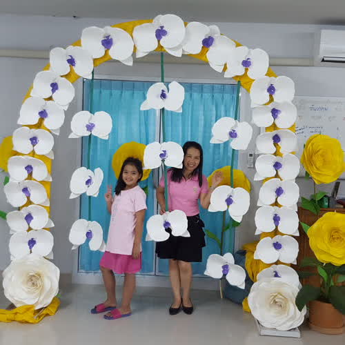 | คำสำคัญ : ซุ้มดอกไม้กระดาษ, ดอกกุหลาบ, ดอกไม้ประดิษฐ์, ดอกไม้กระดาษ, ดอกกล้วยไม้ |