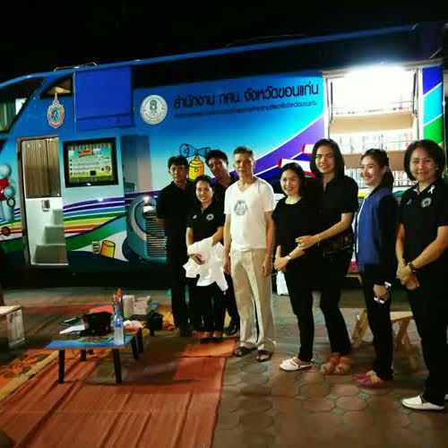 | คำอธิบาย : ห้องสมุดเคลื่อนที่ สำนักงาน กศน.จังหวัดขอนแก่น จัดให้มีรถหห้องสมุดเคลื่อนที่ เพื่อบริการประชาชนในชุมชน โดยมีบรรณารักษ์ และ อาสาสมัครส่งเสริมการอ่าน นำกิจกรรมส่งเสริมการเรียนรู้ และหนังสือ สื่อต่างๆ ออกไปบริการด้วย |