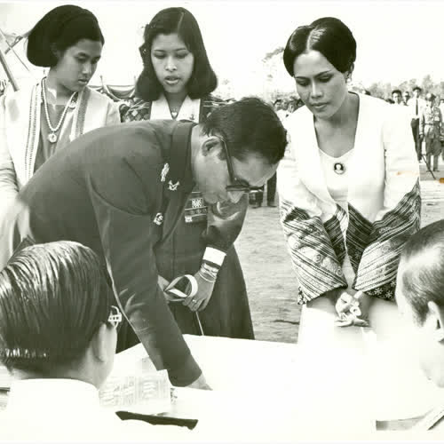 | คำอธิบาย : ทรงประกอบพิธีวางศิลาฤกษ์อาคารโรงพยาบาล ศูนย์วิทยาศาสตร์ สุขภาพ นามพระราชทาน “โรงพยาบาลศรีนครินทร์” วันพฤหัสบดี ที่ 19 กุมภาพันธ์ 2519 |