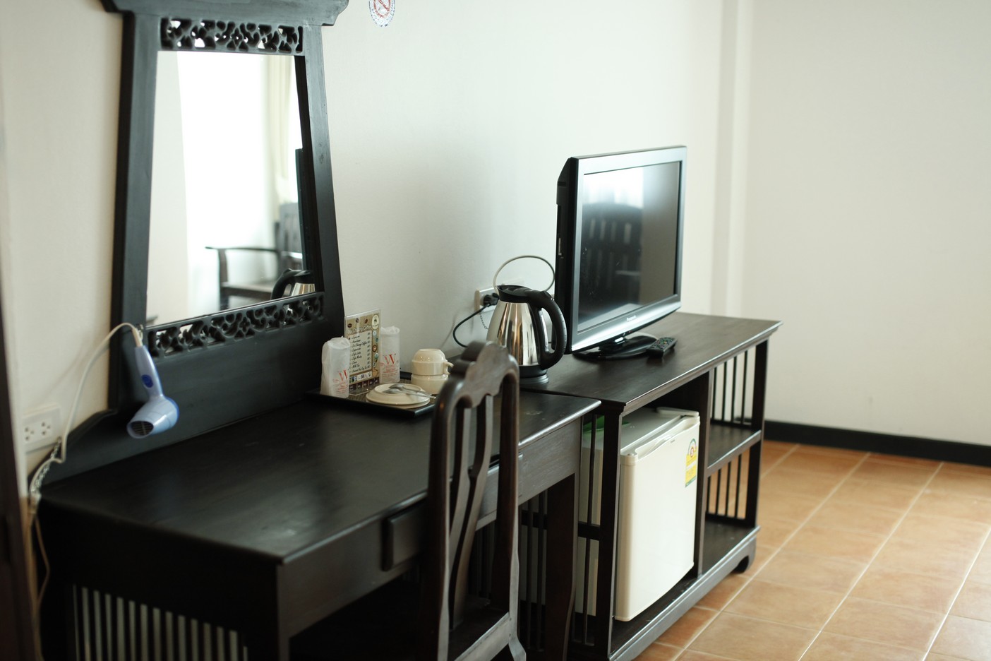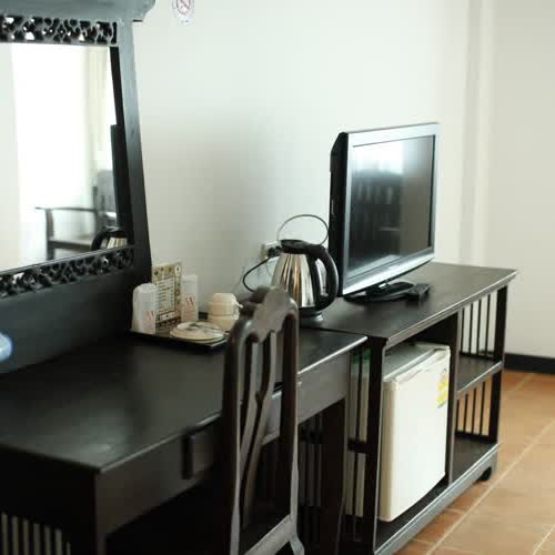 | คำสำคัญ : โทรทัศน์, โรงแรมวังบูรพาแกรนด์, โต๊ะเครื่องแป้ง, ภายในห้องพัก, ตู้เย็น |