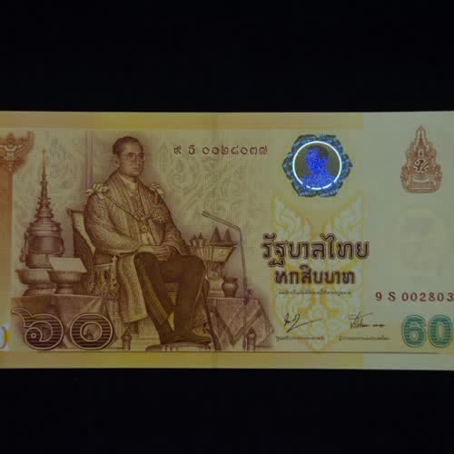 | คำสำคัญ : ฉลองสิริราชสมบัติ 60 ปี, ธนบัตร, แบงค์60บาท, ที่ระลึก, ในหลวงรัชกาลที่9 |
