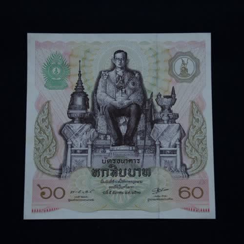 | คำสำคัญ : เฉลิมพระชนมพรรษา 5 รอบ, แบงค์60บาท, ที่ระลึก, ในหลวงรัชกาลที่9, ธนบัตร |