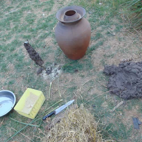 "ปลาช่อนโปะดินโคลน อบฟางโดยใช้ไหครอบ".