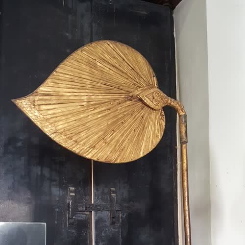| คำอธิบาย : พัดโบก เป็นเครื่องสูงชนิดหนึ่งสําหรับโบกลมถวายพระมหากษัตริย์ซึ่งประทับ ณ ที่สูง |