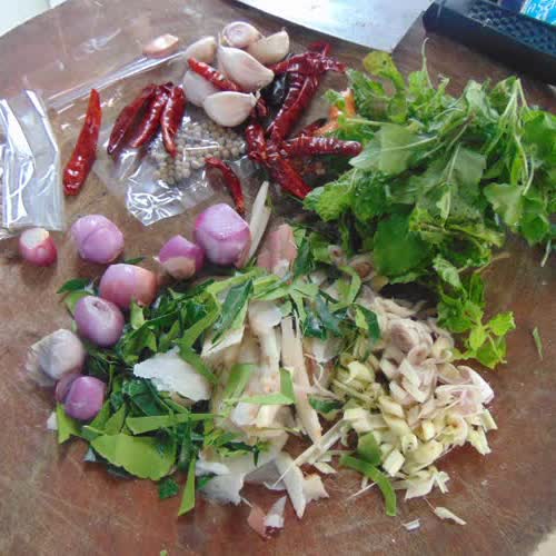 | คำอธิบาย : กบนายัดไส้ทำไม่ยากอาหารพื้นถิ่นเขมรต้องกบนานะครับถึงจะอร่อยตัดหัวลอกเอาหนังออก เอาเครื่องในออกแล้วล้างน้ำให้สะอาดเอาส่วนขาไปสับรวมกับที่เตรียมไว้อีกส่วนโขลกเครื่องเทศ ข่า ตะไคร้ ใบมะกรูด ขมิ้นพริก กระเทียม หอมแดง พริกไทย ใบกะเพราป่าให้แหลกละเอียด แล้วเอามาคลุกกับเนื้อกบที่สับไว้ให้เข้ากันโรยเกลือไปหน่อย เด็ดผักขะแญงผสมไปด้วยจะได้หอมคลุก ๆ จนได้ที่ แล้วยัดใส่ท้องกบให้แน่นหาไม้ไผ่มาผ่าแล้วหนีบ มัดปลายดี ๆทา ๆ เครืองเทศ ไปอีกหน่อยย่างไฟอ่อน ๆ รอจนสุกแห้งได้ที่แบ่งปันเพื่อนบ้านไปบ้าง |
