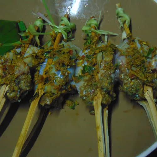| คำอธิบาย : กบนายัดไส้ทำไม่ยากอาหารพื้นถิ่นเขมรต้องกบนานะครับถึงจะอร่อยตัดหัวลอกเอาหนังออก เอาเครื่องในออกแล้วล้างน้ำให้สะอาดเอาส่วนขาไปสับรวมกับที่เตรียมไว้อีกส่วนโขลกเครื่องเทศ ข่า ตะไคร้ ใบมะกรูด ขมิ้นพริก กระเทียม หอมแดง พริกไทย ใบกะเพราป่าให้แหลกละเอียด แล้วเอามาคลุกกับเนื้อกบที่สับไว้ให้เข้ากันโรยเกลือไปหน่อย เด็ดผักขะแญงผสมไปด้วยจะได้หอมคลุก ๆ จนได้ที่ แล้วยัดใส่ท้องกบให้แน่นหาไม้ไผ่มาผ่าแล้วหนีบ มัดปลายดี ๆทา ๆ เครืองเทศ ไปอีกหน่อยย่างไฟอ่อน ๆ รอจนสุกแห้งได้ที่แบ่งปันเพื่อนบ้านไปบ้าง |