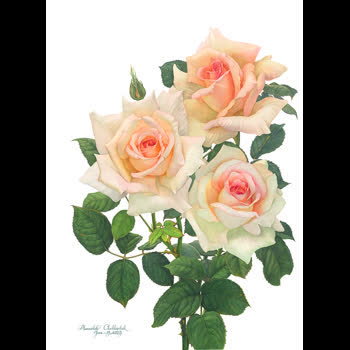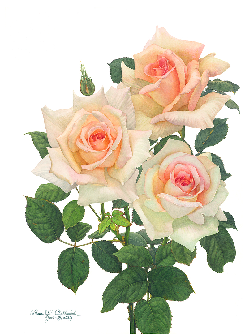ภาพวาดสีน้ำกุหลาบควีนซิลเวีย