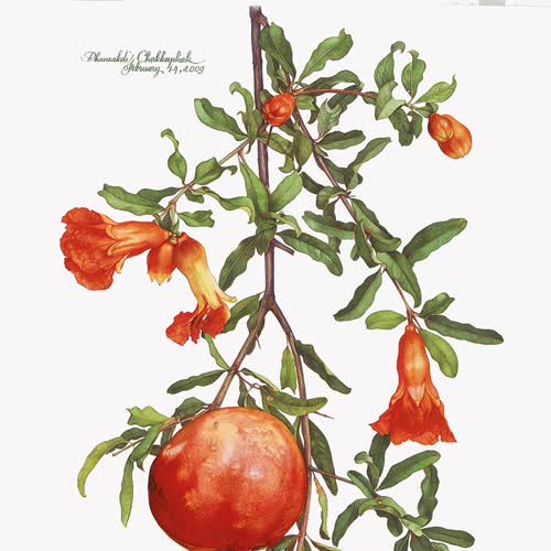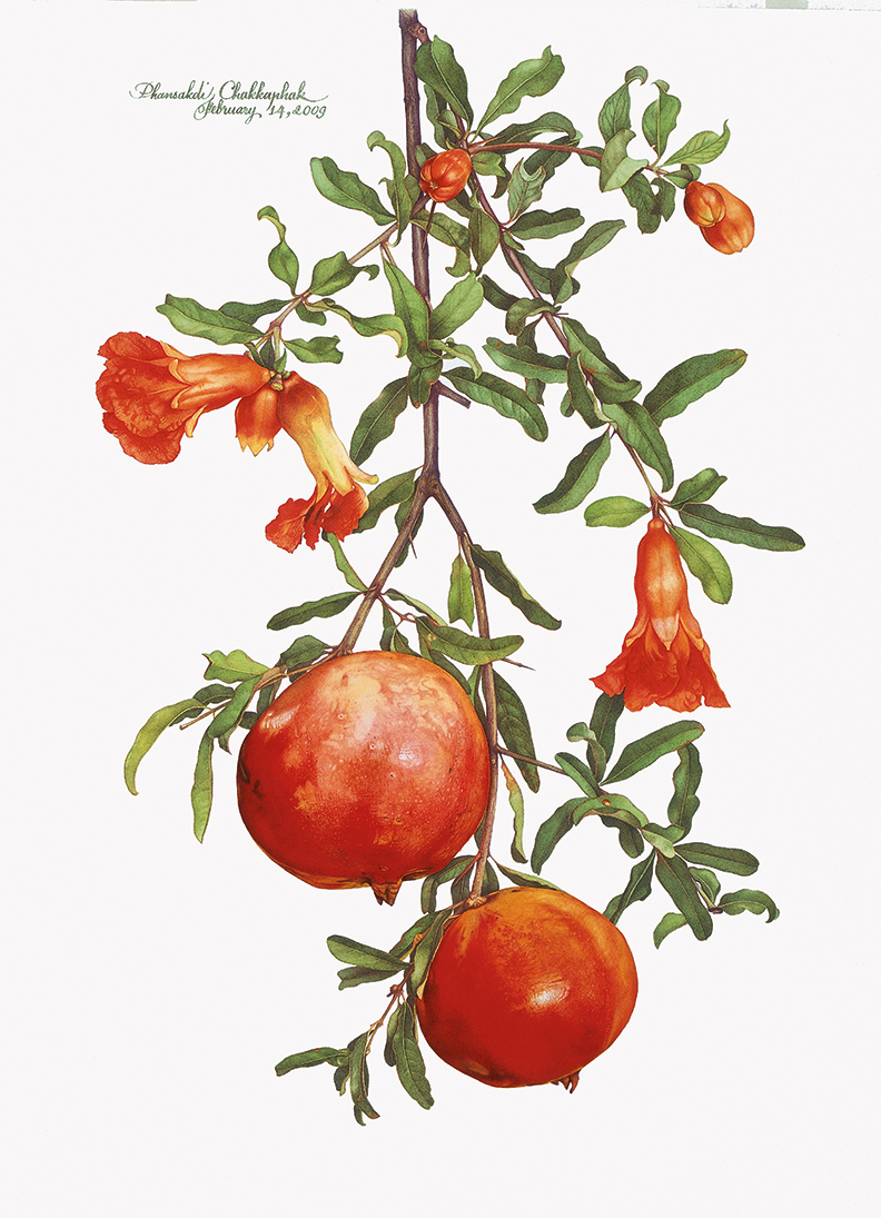 | คำอธิบาย : ภาพวาดสีน้ำทับทิม |