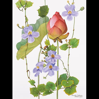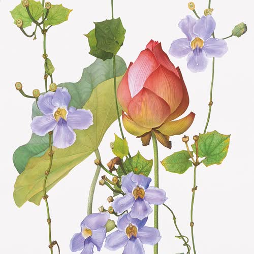 | คำสำคัญ : งานศิลปะ, ผลงานศิลป์, ภาพวาดสีน้ำ, บัวหลวง, สร้อยอินทนิล |