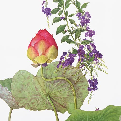 | ชื่อเรื่อง : ภาพวาดสีน้ำบัวหลวง-เทียนหยด |