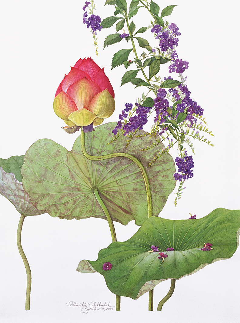 (2563). "ภาพวาดสีน้ำบัวหลวง-เทียนหยด".