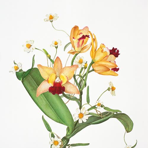 "ภาพวาดสีน้ำกล้วยไม้-กระดุมเงิน".