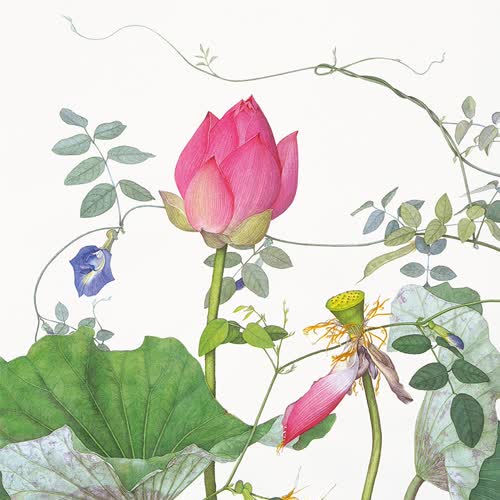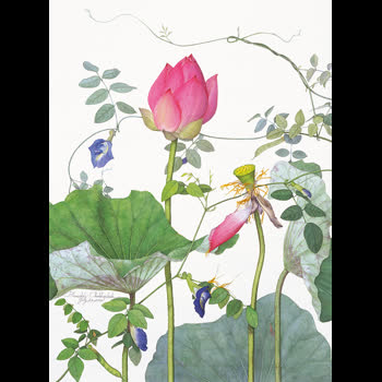 "ภาพวาดสีน้ำบัวหลวง-อัญชัน".