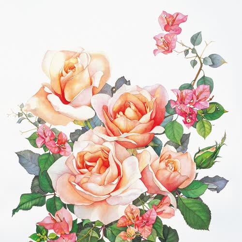 | ชื่อเรื่อง : ภาพวาดสีน้ำกุหลาบ-เฟื่องฟ้า |