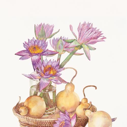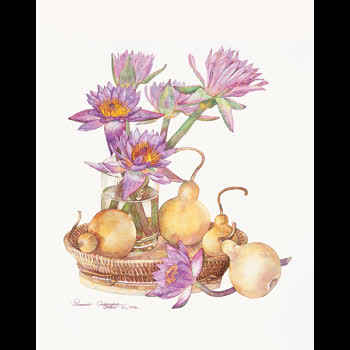 | ชื่อเรื่อง : ภาพวาดสีน้ำบัวสี-น้ำเต้า |