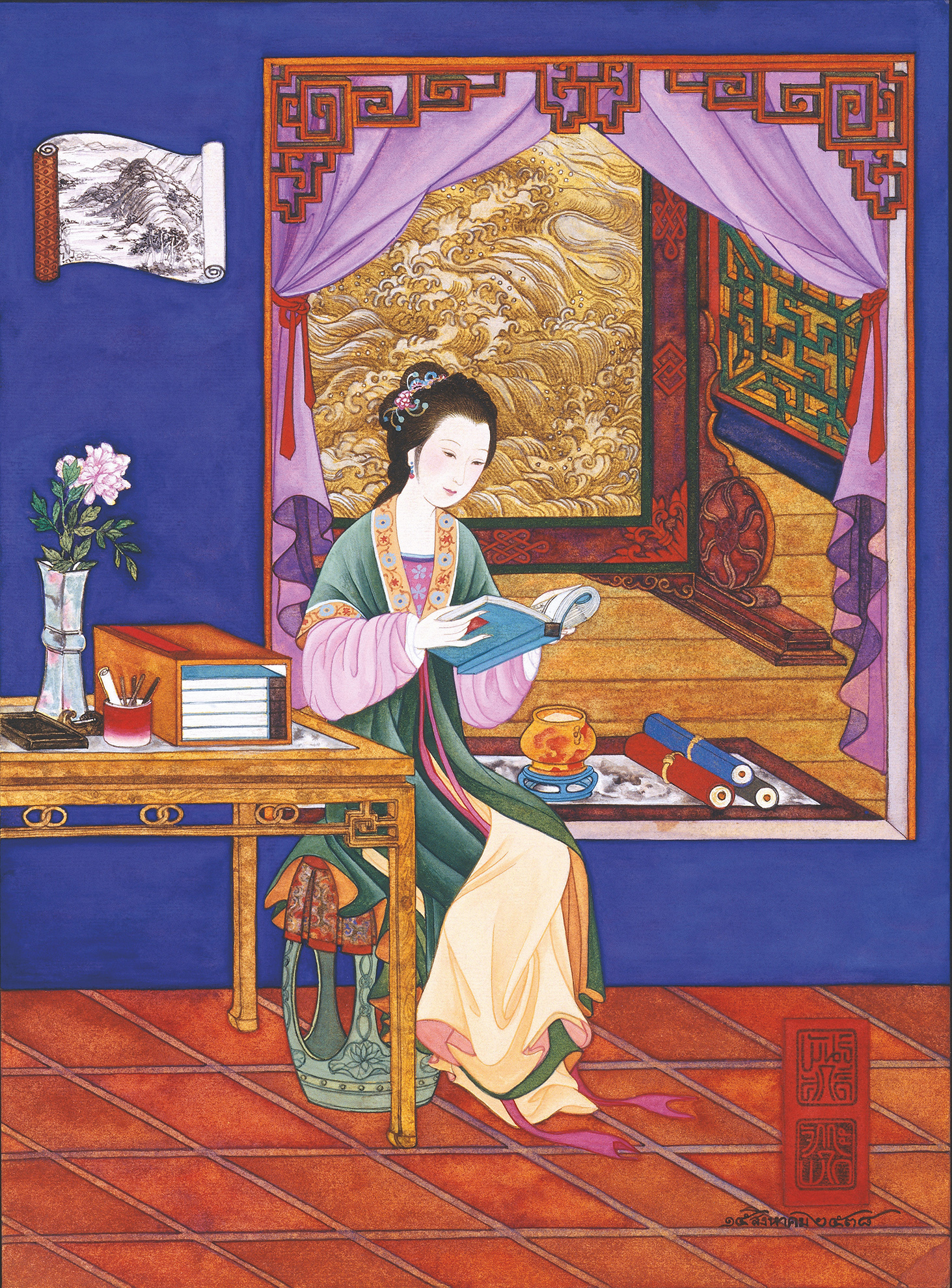| คำอธิบาย : ภาพวาดสีน้ำจีน |