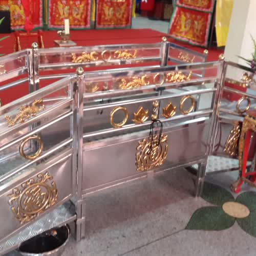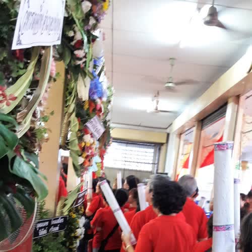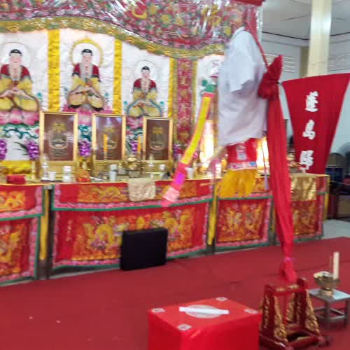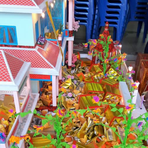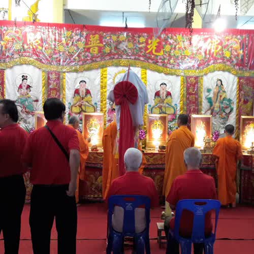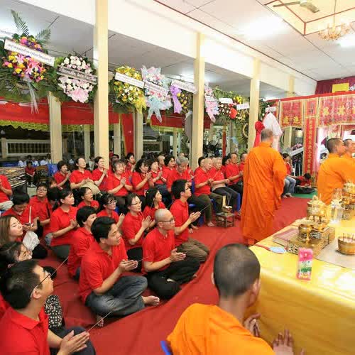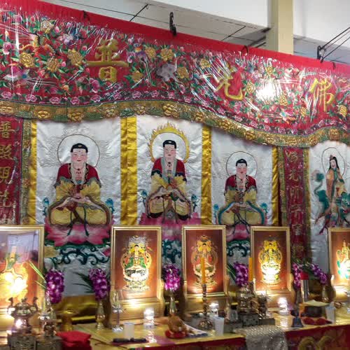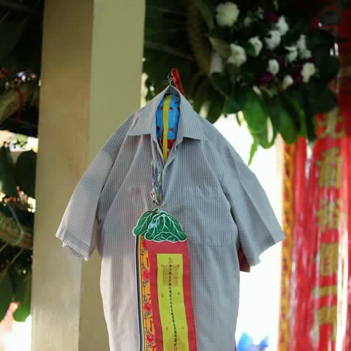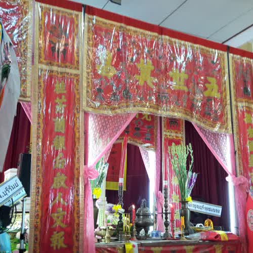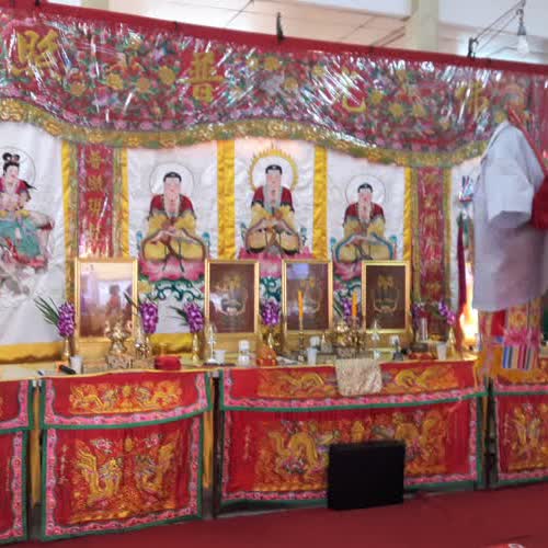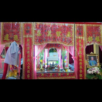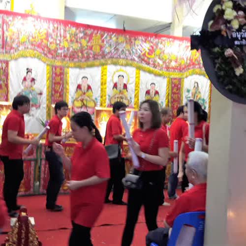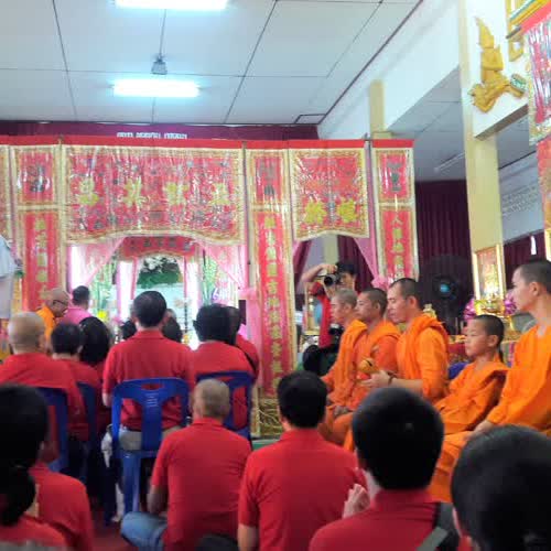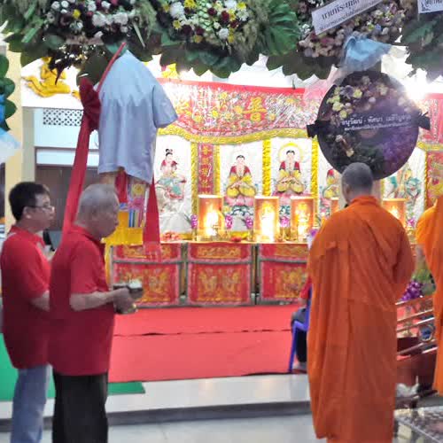 | คำอธิบาย : งานพิธีศพของชาวจีนโพ้นทะเลหรือคนจีนในเมืองไทย (ฮั้วเคี้ยว หรือ หัวเฉียว) เรียกว่า พิธีกงเต็ก โดยในพิธีจะมีการตกแต่งสถานที่ให้ดูสวยงาม เพื่อให้เกียรติแด่ผู้วายชนม์ พิธีกงเต็กโดยส่วนใหญ่จะนิมนต์พระสงฆ์เป็นผู้ประกอบพิธี หรือบุคคลธรรมดาที่รับจ้างประกอบพิธีกงเต็ก พระสงฆ์ที่ทำพิธีกงเต็กในประเทศไทยเป็นคณะสงฆ์นิกายมหายานในประเทศไทย มีอยู่สองคณะ คือ คณะสงฆ์จีนนิกาย (พระจีน) และ คณะสงฆ์อนัมนิกาย (พระญวณ) โดยรูปภาพในชุดนี้มีพระสงฆ์อนัมนิกาย เป็นผู้ประกอบพิธีพิธีกงเต็ก โดยทั่วไปจะทำพิธีตั้งแต่ช่วงเช้า ไปถึงเวลาค่ำ โดยลูกหลานที่เข้าร่วมพิธีจะแต่งกายไว้ทุกข์ คือ บุตร-ธิดาของผู้วายชนม์ จะแต่งกายด้วยชุดผ้ากระสอบ ขณะที่ญาติพี่น้องและลูกหลานต่าง ๆ จะแต่งกายด้วยชุดผ้าดิบ โดยบุตรชายคนโตจะเป็นผู้ถือกระถางธูปและหลานชายคนโตจะถือชุดที่ผู้วายชนม์เคยใส่มาก่อน เป็นผู้นำขบวนของพิธี โดยจะเรียงลำดับจากบุตรชายทั้งหมด ตามด้วยบุตรสาวทั้งหมด และลูกหลาน ญาติพี่น้องทั้งหมด โดยเรียงลำดับญาติฝ่ายชายทั้งหมด จึงตามด้วยญาติฝ่ายหญิงทั้งหมดเครื่องประกอบพิธี ได้แก่ แท่นบูชาพระพุทธเจ้าและพระโพธิสัตว์ทุกพระองค์ สะพานเพื่อส่งวิญญาณผู้วายชนม์ และเครื่องใช้ต่าง ๆ ที่ทำจากกระดาษเพื่อให้ผู้วายชนม์ได้นำไปใช้ต่อไป ประกอบด้วย เครื่องเซ่นไหว้ของฝ่ายลูกชายและฝ่ายลูกสาว ซึ่งจะมีความแตกต่างกัน งานกระดาษกงเต็กจำลองข้าวของเครื่องใช้ที่ผู้วายชนม์เคยใช้ในขณะยังมีชีวิตอยู่ และต้องมีคนรับใช้ชาย-หญิงด้วยรูปพิธีกงเต็กในชุดนี้ มีความแตกต่างจากพิธีกงเต็กทั่วไป เนื่องด้วย ผู้วายชนม์ คือ คุณปู่กีแมะ แซ่เจี่ย มีอายุยืนถึง 102 ปี ตามความเชื่อของชาวจีน หากผู้วายชนม์มีอายุยืนเกิน 90 ปีขึ้นไป จะถือว่าท่านเป็นผู้มีบุญมาก อายุยืน มีลูก หลาน เหลนมากมาย สร้างครอบครัวให้มีความเจริญรุ่งเรือง การจัดพิธีกงเต็กส่งดวงวิญญาณของท่านจึงนับว่าเป็นเรื่องมงคลแก่ครอบครัว ลูก-หลาน-เหลนของตระกูล ดังนั้นเจ้าภาพของงาน คือ ครอบครัว "อังสาชน" ประกอบด้วย บุตร-ธิดา หลาน และเหลนของคุณปู่กีแมะ แซ่เจี่ย และแขกผู้มีเกียรติที่มาร่วมพิธีทุกคนจะแต่งกายสีแดงหรือสีสันสดใส งดแต่งกายไว้ทุกข์ |