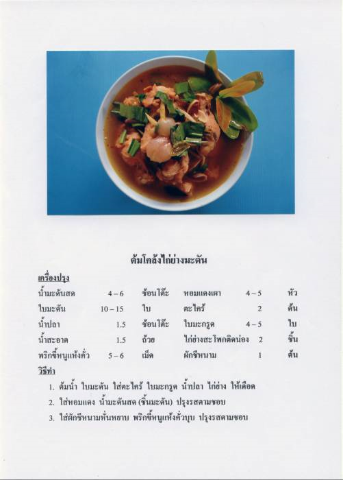 | คำสำคัญ : สูตรอาหาร, ภาพอาหาร, การทำต้นโคล้งไก่ย่างมะดัน |