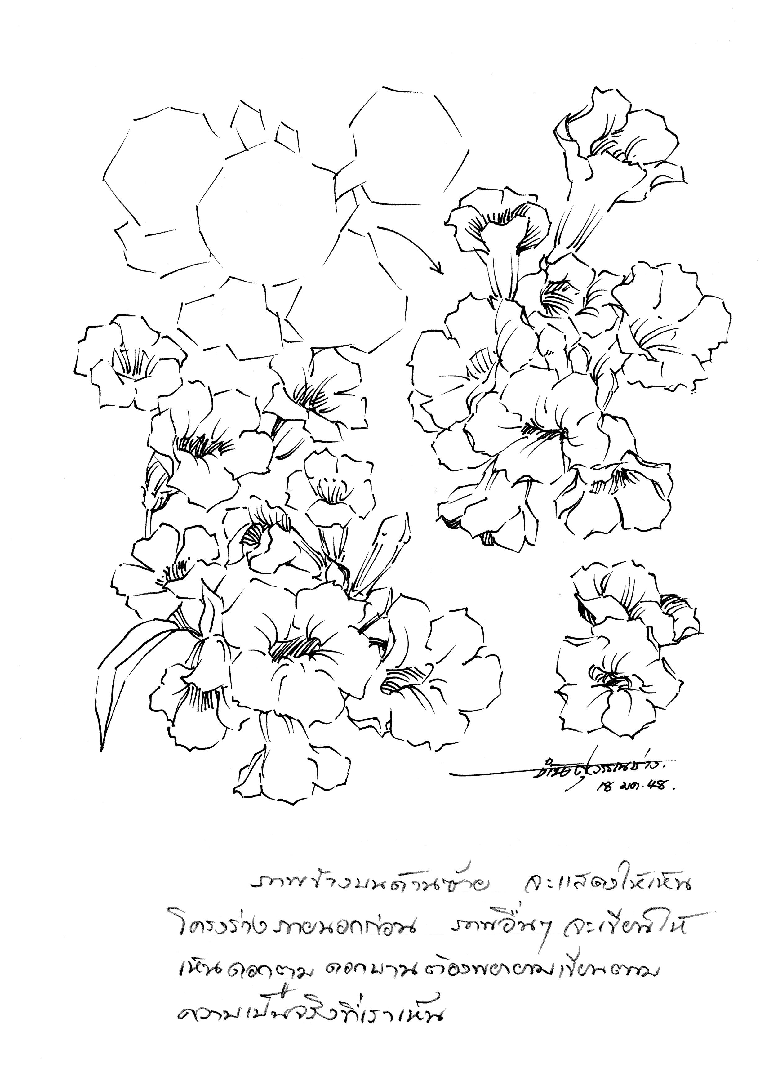| คำสำคัญ : จิตรกรรมรูปดอกไม้, ภาพลายเส้น, ภาพเขียน |