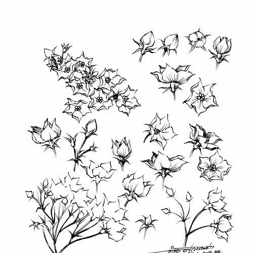 | คำอธิบาย : การวาดเส้นดอกไม้ที่เป็นช่อ |