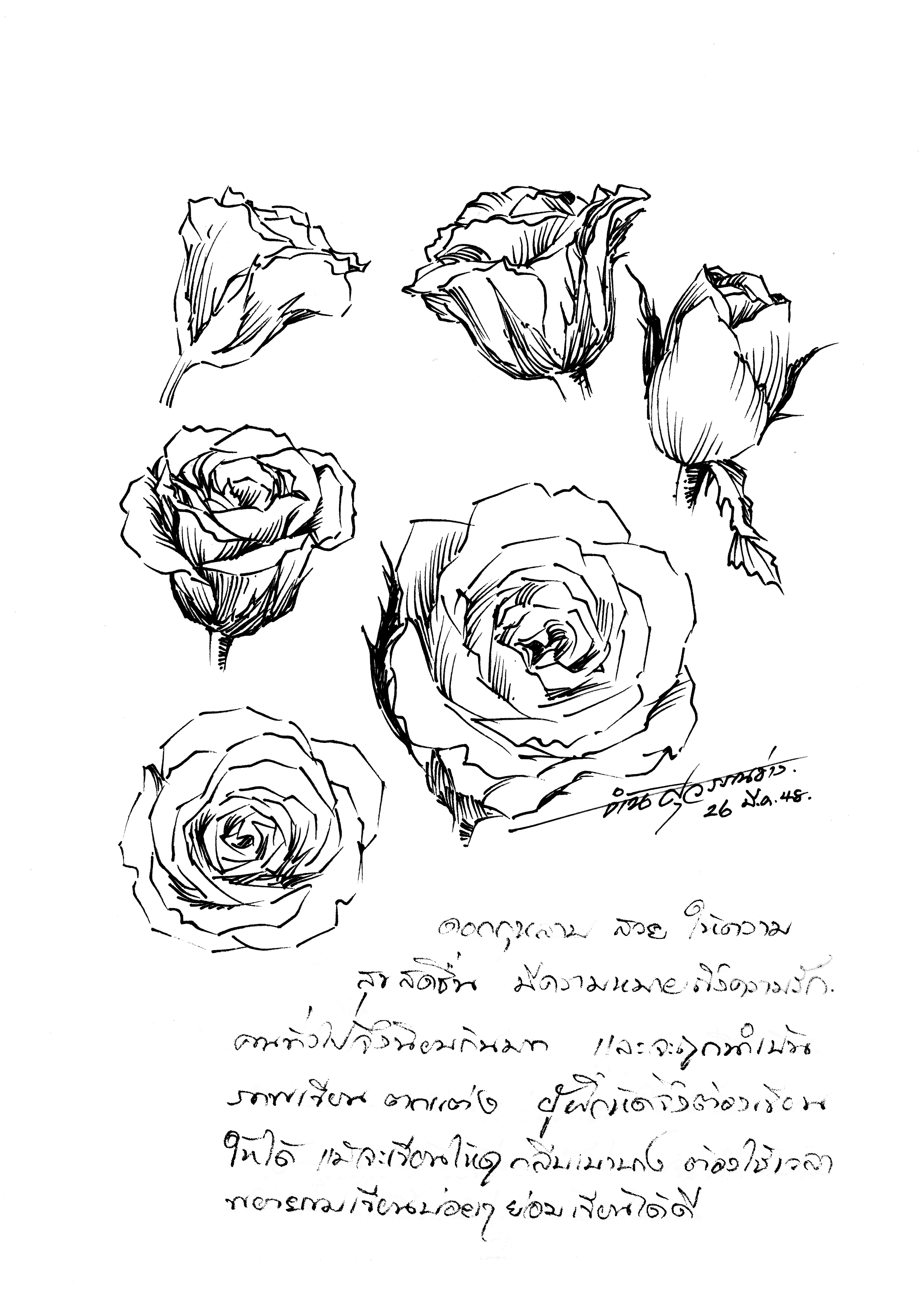 | คำอธิบาย : การวาดภาพลายเส้น ดอกกุหลาบ |