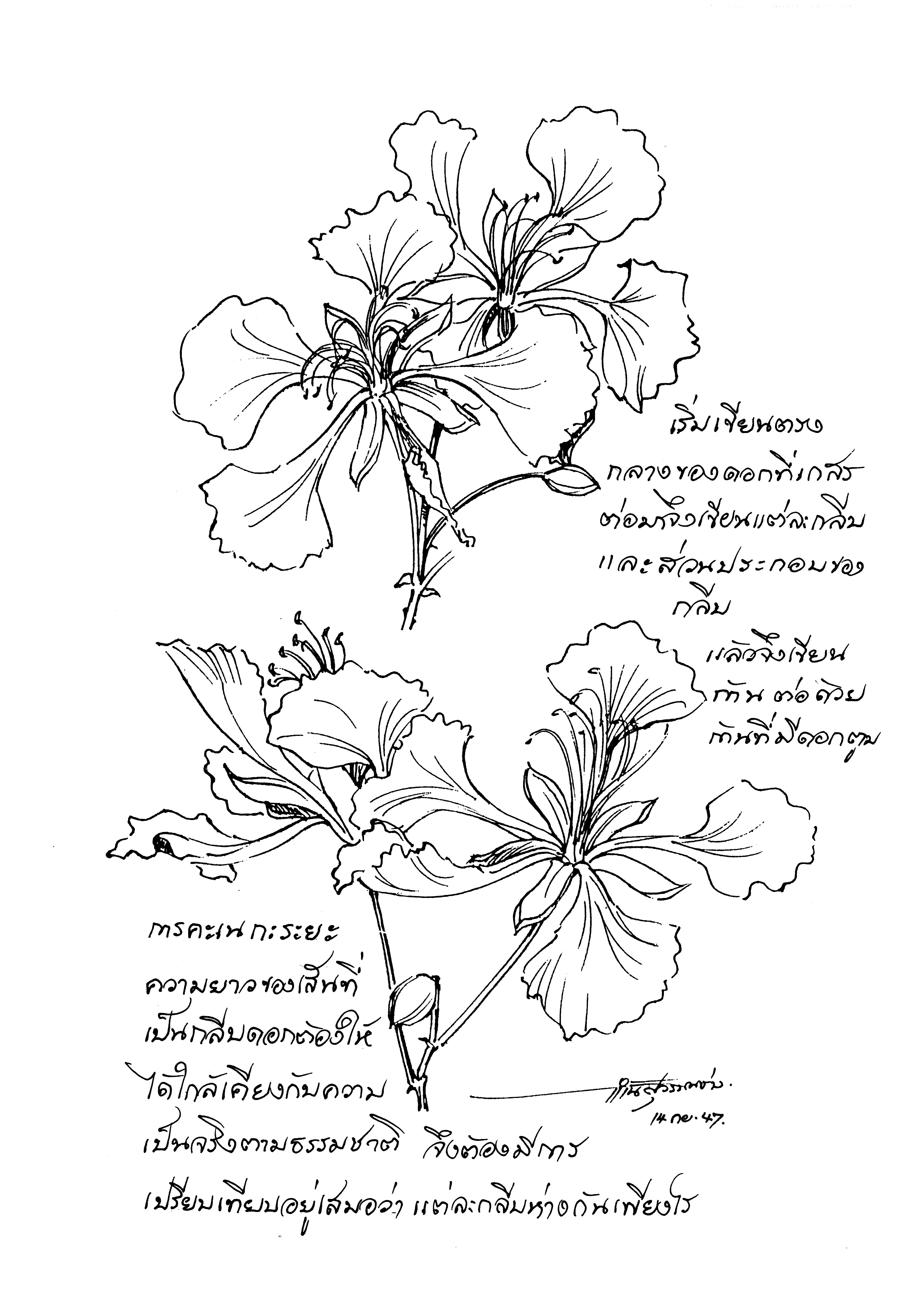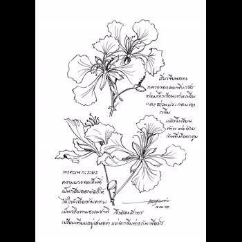 | คำสำคัญ : ดอกหางนกยูง, ภาพลายเส้น, จิตรกรรมรูปดอกไม้, ภาพเขียน |