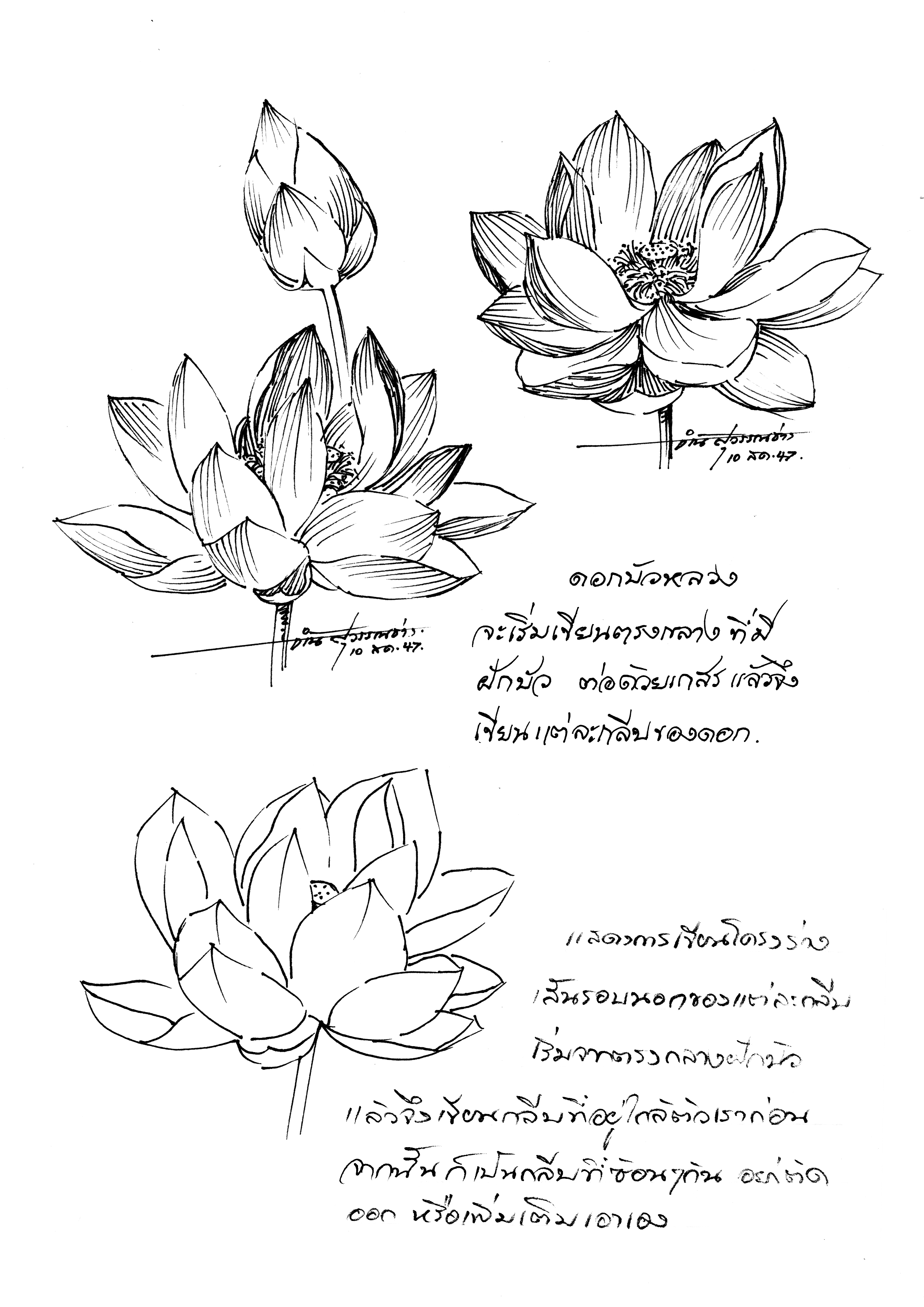 | คำสำคัญ : ภาพลายเส้น, ภาพเขียน, จิตรกรรมรูปดอกไม้, ดอกบัวหลวง |