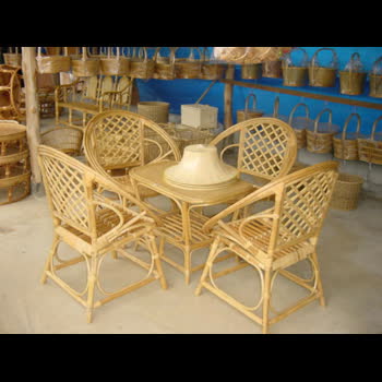 | ชื่อเรื่อง : โต๊ะเก้าอี้จักสานจากหวาย |