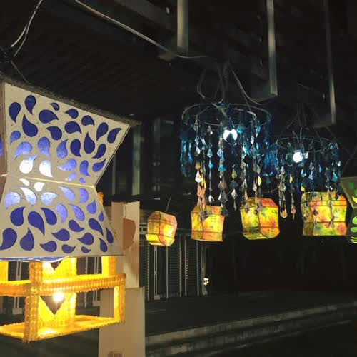 | คำอธิบาย : โคมไฟทำจากวัสดุหลากหลายปนะเถท |