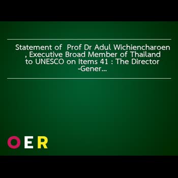(2559). "Statement of Prof. Dr. Adul Wichiencharoen, Executive Broad Member of Thailand to UNESCO on Items 4.1 : The Director-General s premilinary proposals concerning the Draft Programme and budget for 1994-1995 (27C/5)".