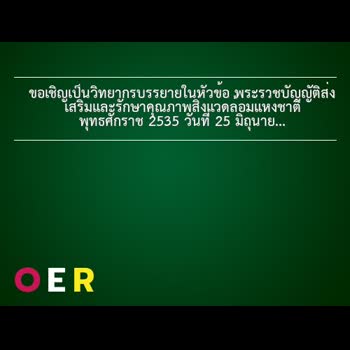 ขอเชิญเป็นวิทยากรบรรยายในหัวข้อ พระราชบัญญัติส่งเสริมและรักษาคุณภาพสิ่งแวดล้อมแห่งชาติ พุทธศักราช 2535 วันที่ 25 มิถุนายน 2537 ได้รับใบอนุญาตภายใต้ ให้เผยแพร่-โดยต้องระบุที่มาแต่ห้ามดัดแปลงและห้ามใช้เพื่อการค้า 3.0 Thailand.