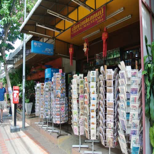| คำอธิบาย : ร้านเชียงใหม่แสตมป์ ตรงข้ามกับเสาหลักเมือง ถนนราชดำเนิน เข้าท่ากันที่สุด ด้วยโปสการ์ดที่มีขายกันอย่างหลากหลายแบบ ในราคาย่อมเยา ที่เริ่มตั้งแต่ใบละ 5 บาท ไปจนถึงใบละ 40 -50 บาท โปสการ์ดที่นี้ส่วนใหญ่ ไอ้ครั้นจะบอกว่ามีแต่ภาพสถานที่ท่องเที่ยวในเมืองเชียงใหม่ก็ไม่ถูกนัก เพราะมันก็มีของจังหวัดอื่นๆ มาร่วมแจมด้วย ชนิดที่ว่าเราสามารถซื้อโปสการ์ดภาพชายหาดพัทยา แต่ทว่าส่งกันที่เชียงใหม่ได้อย่างสะดวก (แต่ไม่แนะนำให้ทำ เพราะมันไม่คลาสสิค และจะถูกจับได้จากคนรับ ด้วยตราปั้มของไปรษณีย์) |