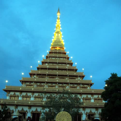 | คำอธิบาย : พระมหาธาตุแก่นนคร หรือ พระธาตุเก้าชั้นฐานสี่เหลี่ยมกว้างด้านละ 50 เมตร เรือนยอดทรงเจดีย์จำลองแบบจากพระธาตุขามแก่น จัดสร้างขึ้น เนื่องในวโรกาสที่ พระบาทสมเด็จพระเจ้าอยู่หัวทรงครองสิริราชสมบัติครบ 50 ปี และมหามังคลานุสรณ์ 200 ปี เมืองขอนแก่น ความสูงขององค์พระธาตุฯ 80 เมตร มีพระจุลธาตุ 4 องค์ ตั้งอยู่ 4 มุมและมีกำแพงแก้วพญานาค 7 เศียรล้อมรอบ เป็นศิลปะสมัยทวาราวดี ผสมผสานศิลปะอินโดจีน ซึ่งเป็นลักษณะแบบชาวอีสานตากแห |