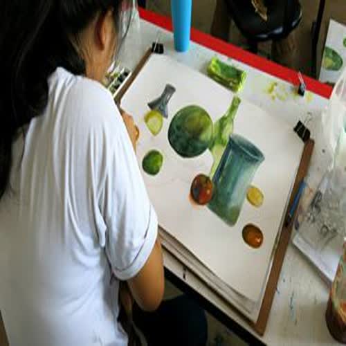 | คำอธิบาย : ผลงานนักศึกษาในการเรียน การวาดภาพสีน้ำ วิชาทัศนศิลป์ |