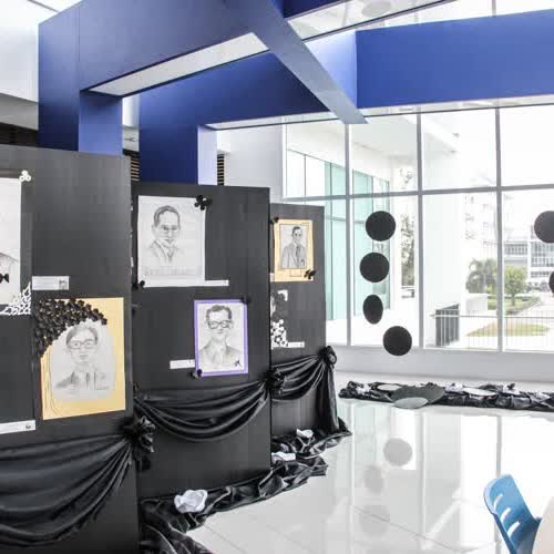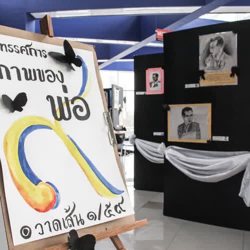 | คำอธิบาย : นิทรรศการศิลปะ “ภาพของพ่อ” เพื่อระลึกถึงพระมหากรุณาธิคุณของพระบาทสมเด็จพระปริมินทรมหาภูมิพลอดุลยเดชฯ รัชกาลที่ 9 |