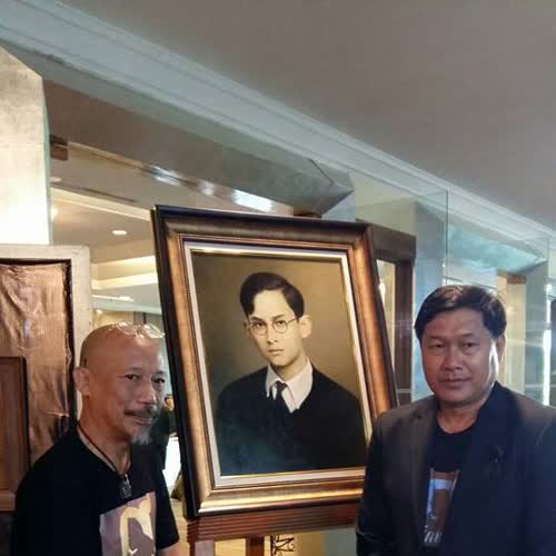 | คำอธิบาย : จุลจิต เสน่ห์งามเจริญ (ยืนซ้าย) จิตรกรเอกแห่งสยาม ศิลปิน 2 แผ่นดิน ในรัชกาลที่ 9 และรัชกาลที่ 10 |