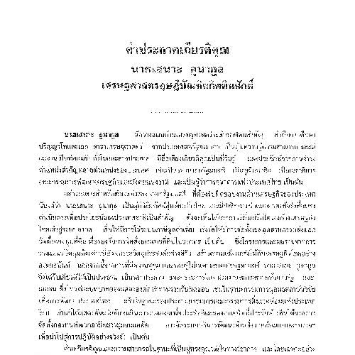 | คำอธิบาย : คำประกาศเกียรติคุณ นายเสนาะ อูนากูล ปริญญาเศรษฐศาสตรดุษฎีบัณฑิตกิตติมศักดิ์ ในพิธีพระราชทานปริญญาบัตรแก่ผู้สำเร็จการศึกษามหาวิทยาลัยขอนแก่น วันพฤหัสบดี ที่ 18 ธันวาคม 2540 |
