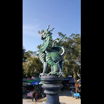 รีวิว : รูปปั้นสิงห์หน้าวิหารวัดร่องเสือเต้น