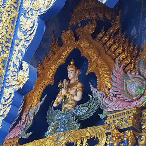 | คำอธิบาย : วัดร่องเสือเต้น ตั้งอยู่หมู่บ้านร่องเสือเต้น ต.ริมกก อ.เมือง จ.เชียงราย สร้างสรรค์ขึ้นด้วยจากฝีมือของศิลปินชาวพื้นบ้าน นายพุทธา กาบแก้ว หรือ สล่านก ศิลปินท้องถิ่นชาวเชียงราย ผู้ซึ่งเมื่อคราวจบการศึกษาใหม่ๆ ได้มีโอกาสเข้าไปศึกษาและเป็นลูกมือของอาจารย์เฉลิมชัย ในการสร้างวัดร่องขุน เมื่อมีโอกาสได้มาสร้างวิหารวัดแห่งนี้ จึงได้นำวิชาที่ร่ำเรียนมารังสรรค์ให้เกิดประโยชน์ จนกลายเป็นวัดโดดเด่นในเรื่องสีสันและความสวยงาม |
