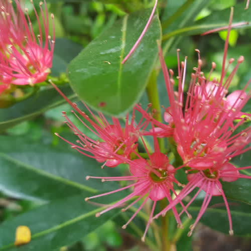 | คำอธิบาย : รักแรกพบ เป็นไม้ดอกที่นิยมปลูกประดับเนื่องจากมีดอกที่สวยงาม ออกเป็นช่อ มีหลายสี เช่น สีแดง สีชมพู สีเหลือง |