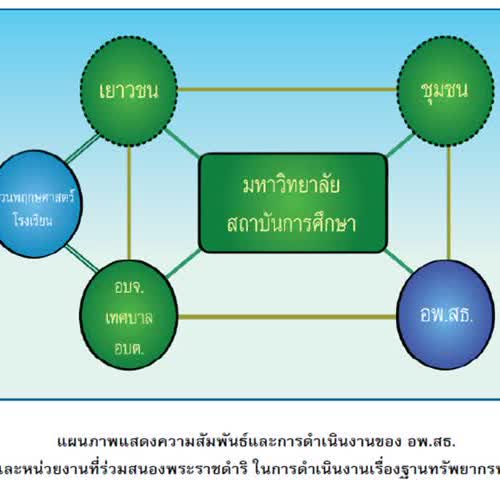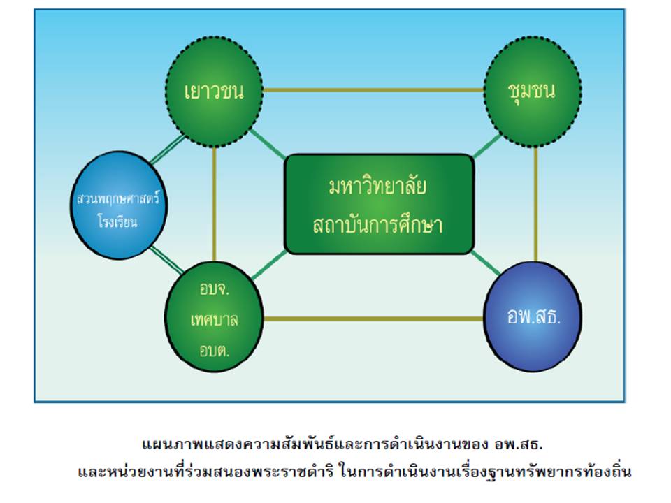 | คำอธิบาย : แผนภาพแสดงความสัมพันธ์ในการดำเนินงานของ อพสธ. |