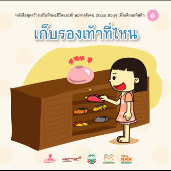 หนังสือชุดสร้างเสริมทักษะชีวิตและทักษะทางสังคม (Social Story) เพื่อเด็กออทิสติก เรื่อง เก็บรองเท้าที่ไหนเด็กผู้หญิง ได้รับใบอนุญาตภายใต้ ให้เผยแพร่-โดยต้องระบุที่มาแต่ห้ามดัดแปลงและห้ามใช้เพื่อการค้า 3.0 Thailand.