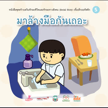 หนังสือชุดสร้างเสริมทักษะชีวิตและทักษะทางสังคม (Social Story) เพื่อเด็กออทิสติก เรื่อง มาล้างมือกันเถอะเด็กผู้ชาย ได้รับใบอนุญาตภายใต้ ให้เผยแพร่-โดยต้องระบุที่มาแต่ห้ามดัดแปลงและห้ามใช้เพื่อการค้า 3.0 Thailand.