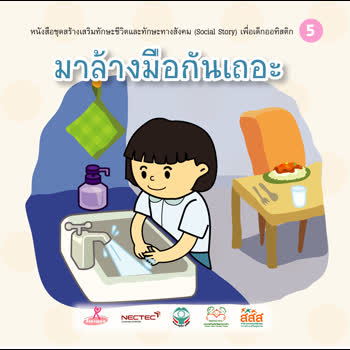 หนังสือชุดสร้างเสริมทักษะชีวิตและทักษะทางสังคม (Social Story) เพื่อเด็กออทิสติก เรื่อง มาล้างมือกันเถอะเด็กผู้หญิง ได้รับใบอนุญาตภายใต้ ให้เผยแพร่-โดยต้องระบุที่มาแต่ห้ามดัดแปลงและห้ามใช้เพื่อการค้า 3.0 Thailand.