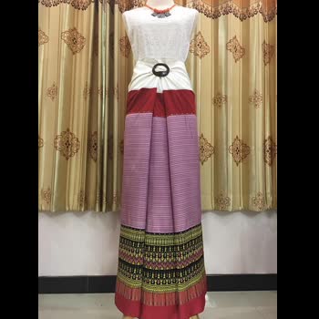 | คำอธิบาย : ตีนจกลายขันดอกไหมแท้ต่อซิ่นไหมแท้ทอมือ เป็นชื่อลายหนึ่งในผ้าทอลายโบราณ ซึ่งเป็นลวดลายเอกลักษณ์ของชาวไท-ยวน งานหัตถกรรมผ้าตีนจกเมืองลอง จากร้านเวียงเหนือ อำเภอลอง จังหวัดแพร่ |