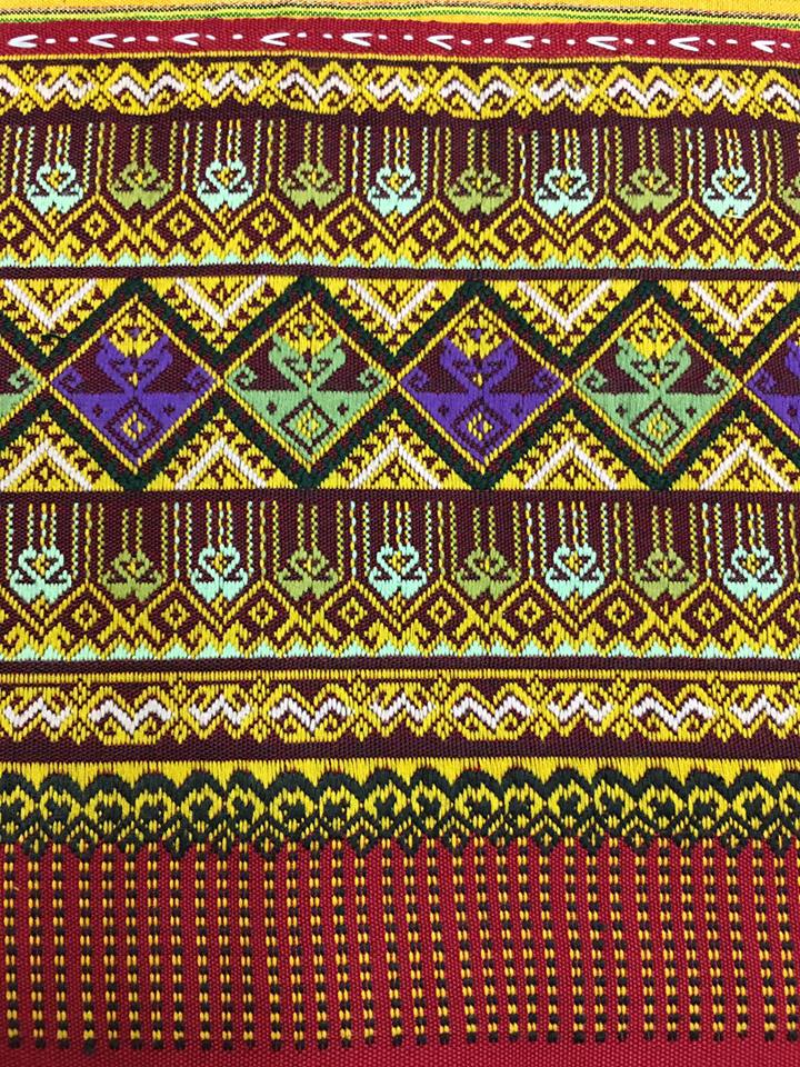 | คำอธิบาย : ตีนจกลายหงส์คู่ ต่อซิ่นผ้าฝ้ายตามะนาว ลายหงส์คู่มีรูปลักษณ์คล้ายนกมักพบเห็นในผ้าจกเมืองแพร่ทั่วไป ตัวหงส์จะแตกต่างจากนกคือในส่วนหัวจะมีช่อขึ้นไป และส่วนหางหงส์จะตวัดเข้ามา ในขณะที่ลายนก ส่วนหัวและหางจะเรียบ เป็นผ้าทอลายโบราณ ซึ่งเป็นลวดลายเอกลักษณ์ของชาวไท-ยวน งานหัตถกรรมผ้าทอตีนจกเมืองลอง จากร้านเวียงเหนือ อำเภอลอง จังหวัดแพร่ |