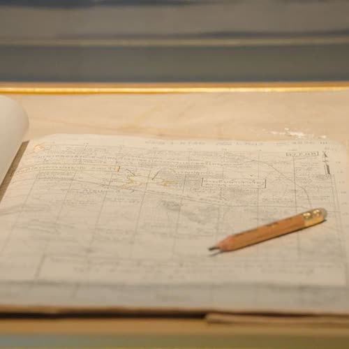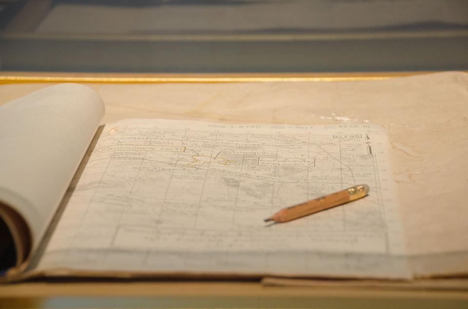 | คำอธิบาย : สมุดแผนที่และดินสอที่จัดแสดงในนิทรรศการเย็นศิระเพราะพระบริบาล |