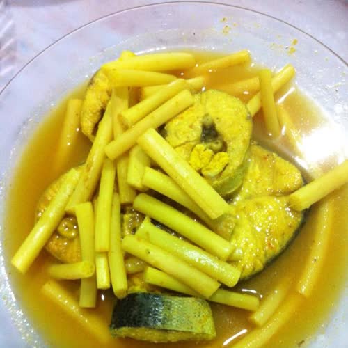 | คำอธิบาย : แกงเหลืองปลากับสายบัว |